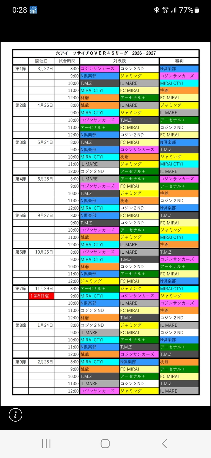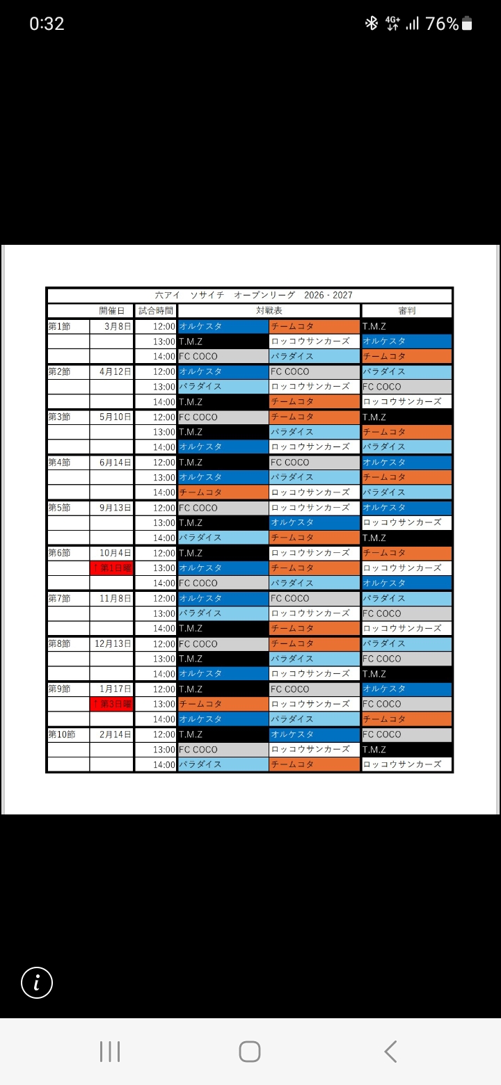 ロクアイリーグ2026年-2027年シーズン開幕! 2025/11/26 07:28 | お知らせ 2026NEWシーズン3月開幕 オーバー45リーグ&オープンリーグと予定表がでました! 2025-2026シーズン結果↓ 楽天ペイ&クレジットカード導入しました。 4月29日13時~18時オーバー35ソサイチ大会開催